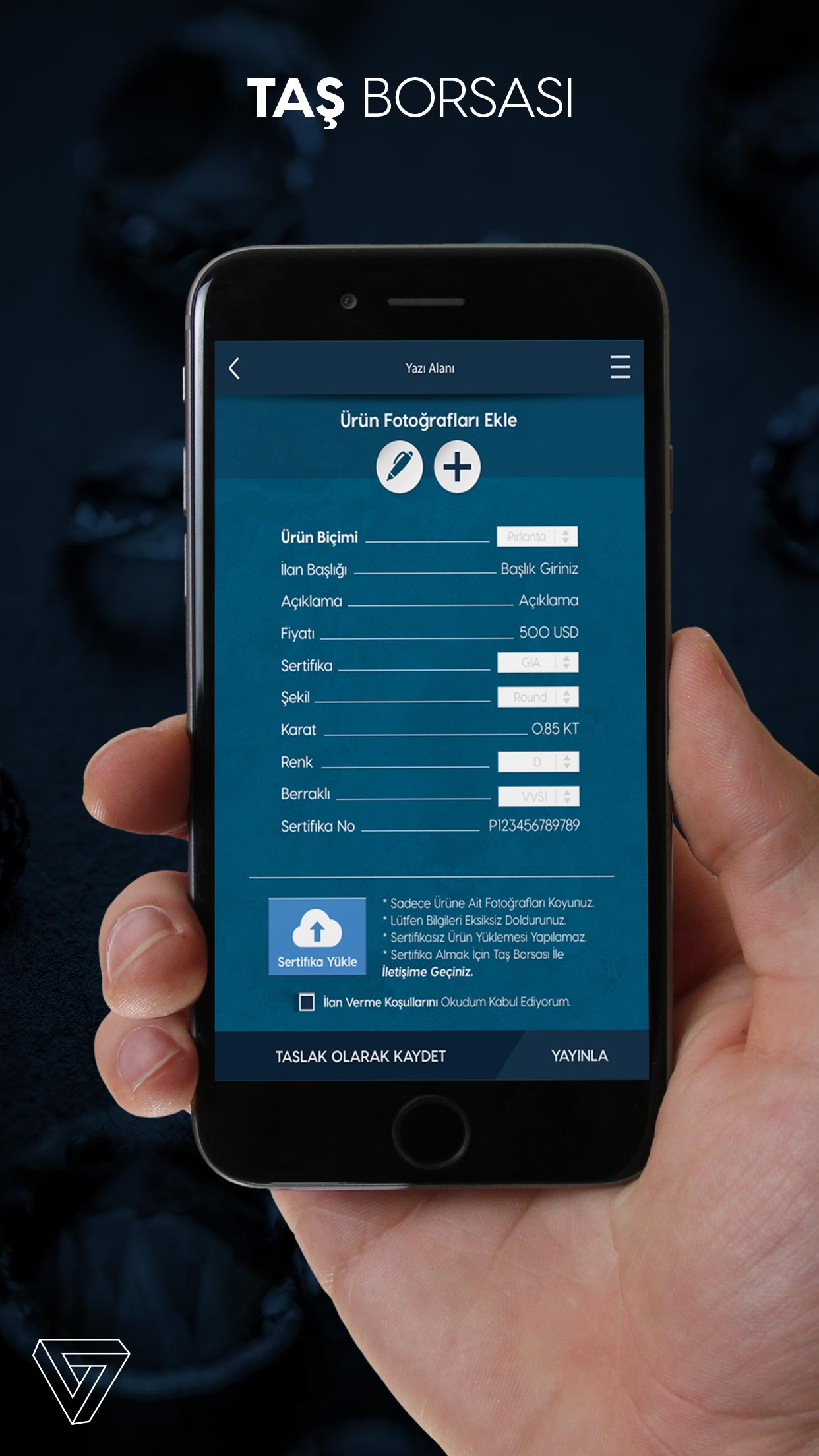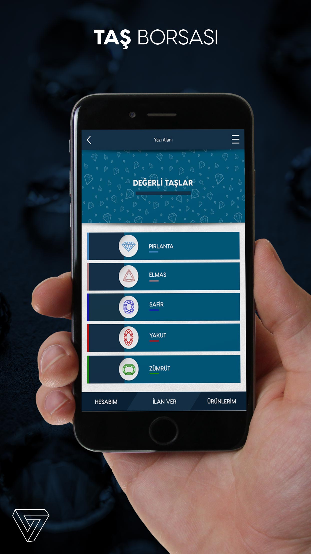 Taş Borsası, Pırlanta, Elmas, Yakut, Zümrüt, Safir gibi değerli taşlarınızı ve bu taşları içeren montürlü ürünlerinizi kolayca alıp-satabileceğiniz ayrıca açık arttırmaya sunabileceğiniz bir mobil uygulamadır.